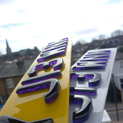Set of premium 4D gel black neon purple 5mm replacement number plates laser cut to perfection. Manufactured using cutting edge laser technology in house, these are the latest bespoke number plates currently on trend.