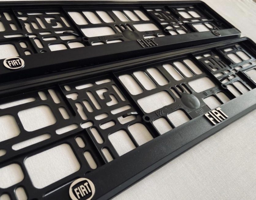 Set of Fiat number plate holder surrounds. Raised 3D embossed finished in premium silver foil. Enhance your number plates look with a more cleaner, sharper finish. Front and rear