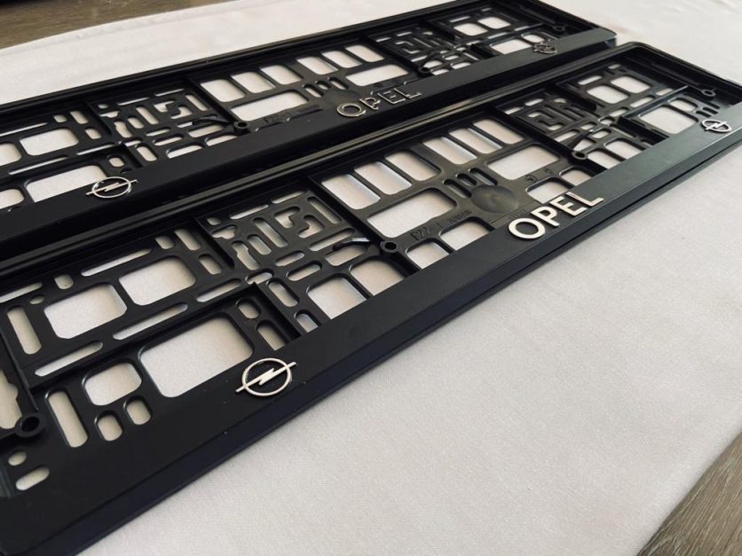Set of Opel number plate holders x2. 3D embossed finished in premium silver foil. Give your number plates that sharper look. suitable for all standard UK number plates